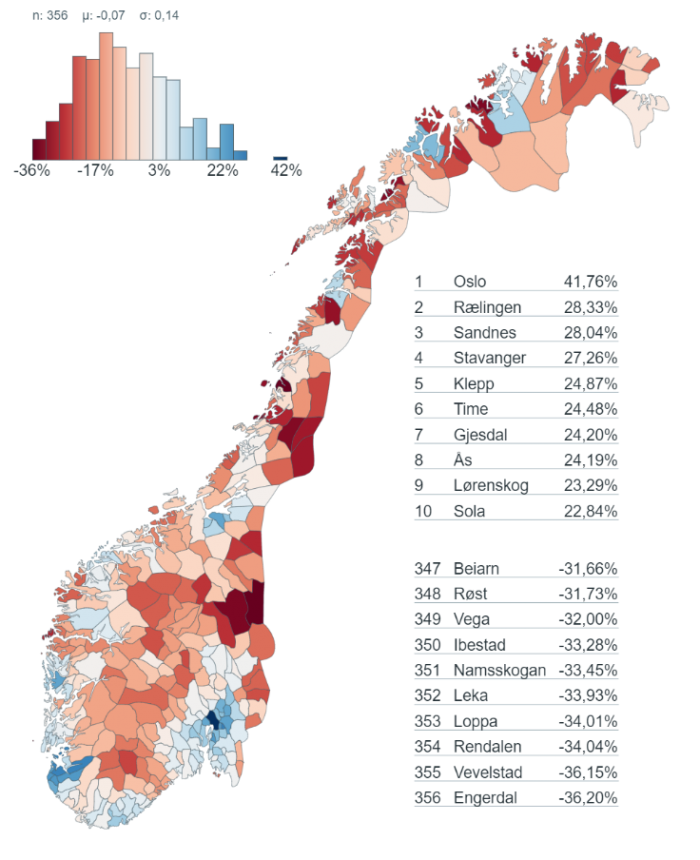 november 6, 2020Telemarksforskings beregninger av framtidig befolkningsutvikling i kommunene i Norge viser at omtrent to av tre kommuner vil få nedgang i folketallet i de neste 20 årene. Distriktskommunene vil samlet sett få sterk nedgang i folketallet. Telemarksforskings beregninger viser en helt annen og langt mer dramatisk nedgang i distriktene enn SSBs framskrivinger.